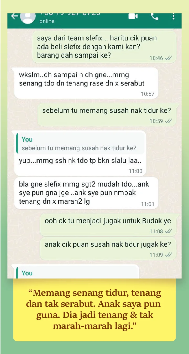 Sangat mudah. Bila rasa susah nak tidur, sapu SLEFIX di tapak tangan, dan hidu dalam-dalam secara perlahan-lahan.