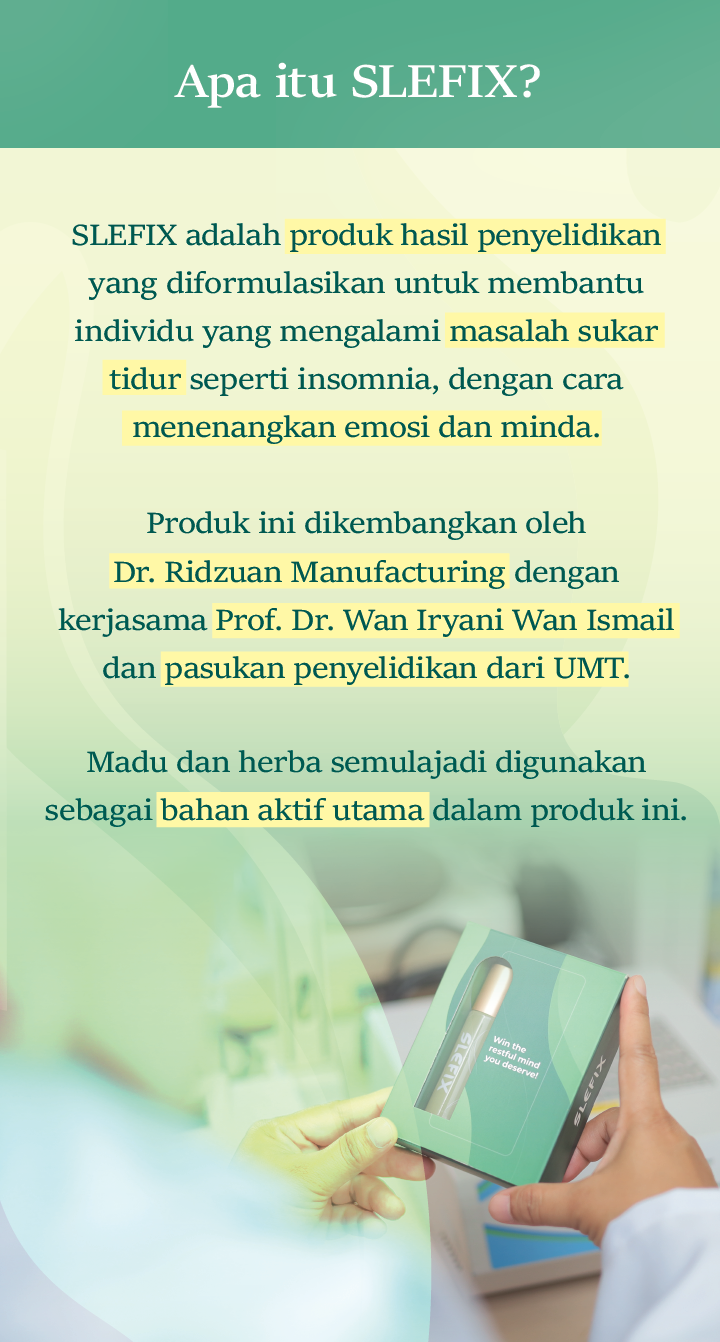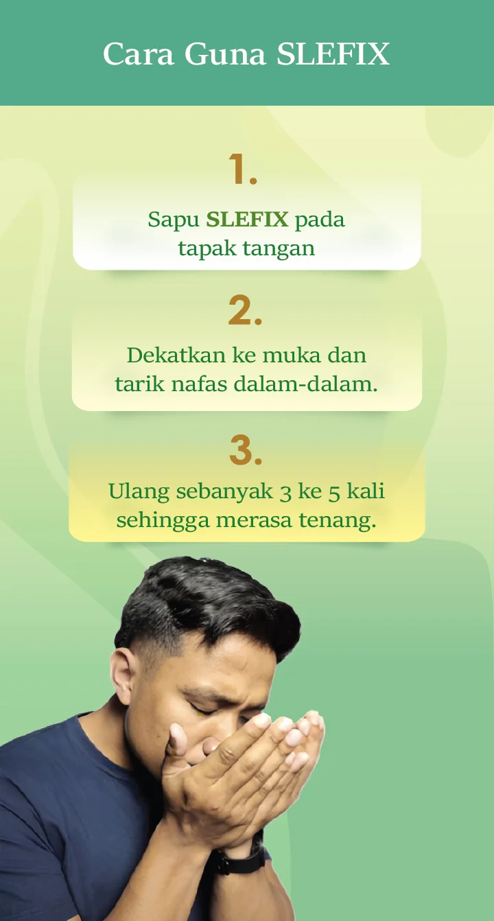 Sangat mudah. Bila rasa susah nak tidur, sapu SLEFIX di tapak tangan, dan hidu dalam-dalam secara perlahan-lahan.